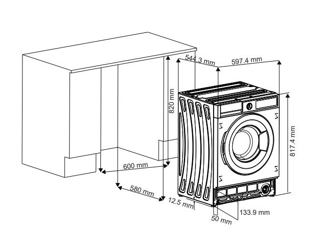 • Размеры ниши для встраивания ВхШхГ, мм: 820х600х580