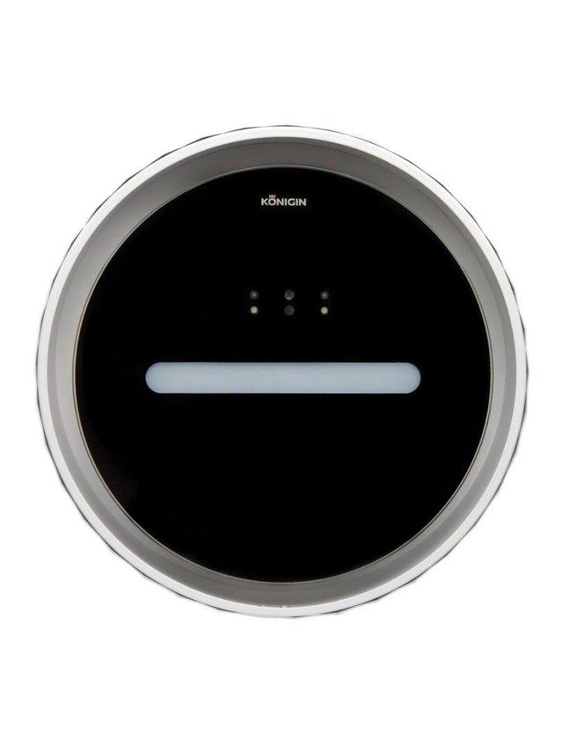 Данная модель оснащена системой управления, распознающей движения рук (жесты) под вытяжкой на стеклянной декоративной панели. Светодиодный индикатор, отображает текущую скорость работы вытяжки определенным цветом (синий, фиолетовый, зеленый, красный). Цвет диода отображается на поверхности варочной плиты, расположенного под вытяжкой.