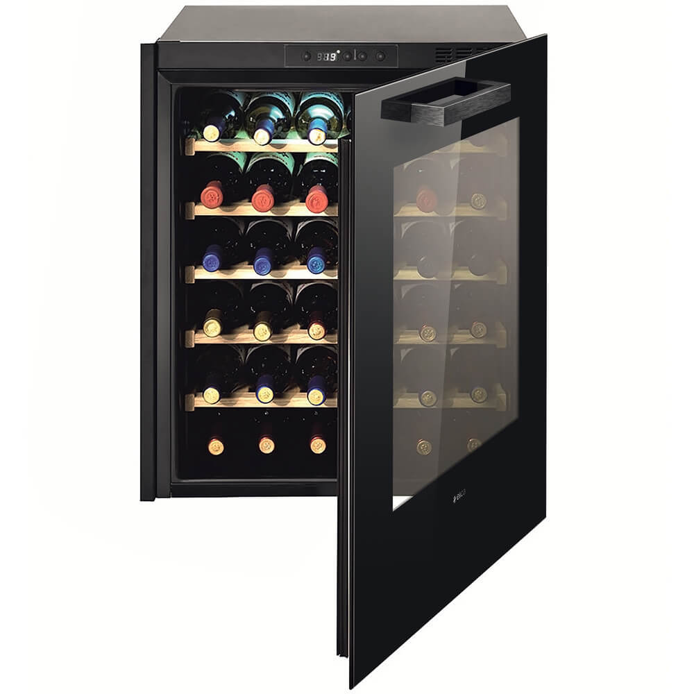 Прочные дубовые полки и стабильная система охлаждения предотвращают микроколебания, которые могут нарушить баланс в составе вина. Выдвижные направляющие позволяют легко и безопасно извлекать бутылки.